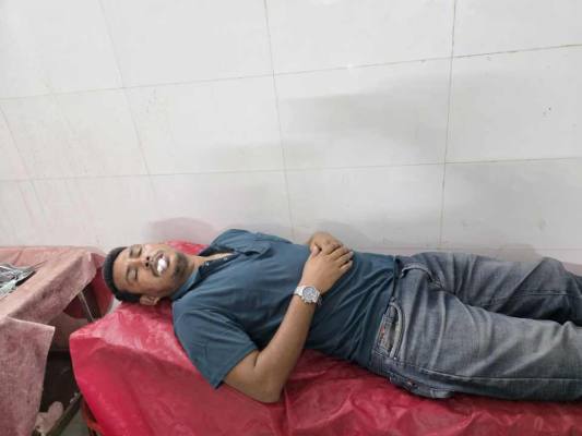 আহত সাংবাদিক শাহিনুর রহমান সুজন দৈনিক দিনকাল পত্রিকার চারঘাট উপজেলা প্রতিনিধি।