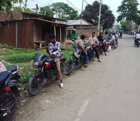 উপজেলার তারাগুনিয়ায় সাগর ফিলিং স্টেশন ও আল্লাদর্গায় রফিক ফিলিং স্টেশনে সরজমিনে গিয়ে দেখা গেছে একইচিত্র। ভোর থেকেই বাইকাররা তাদের মোটরসাইকেল নিয়ে লাইনে সামিল হয় পেট্রোল নেয়ার জন্য। এরফলে আল্লারদর্গা বাজার থেকে তারাগুনিয়া বাজার পর্যন্ত প্রায় দীর্ঘ লাইন পড়ে যানজটের সৃষ্টি হয়। এরফলে বাড়ে জনভোগান্তি।
