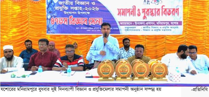 “উদ্ভাবন নির্ভর বাংলাদেশ গঠনে বিজ্ঞান ও প্রযুক্তি” প্রতিপাদ্যকে সামনে রেখে যশোরের মনিরামপুরে বর্ণাঢ্য আয়োজনে ৪৭তম বিজ্ঞান ও প্রযুক্তি সপ্তাহ উদযাপিত হয়েছে।
