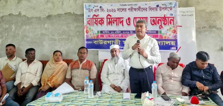 বরিশালের গৌরনদী উপজেলার বাউরগাতী মাধ্যমিক বিদ্যালয়ের এসএসসি পরীক্ষার্থীদের বিদায় সংবর্ধনা ও বার্ষিক মিলাদ-দোয়া এবং শিক্ষা উপকরন বিতরণ করা হয়েছে।