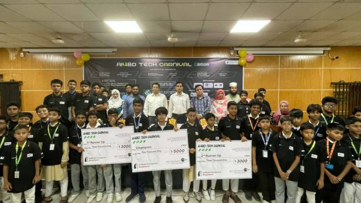 ‘এআই ফর বিডি টেক কার্নিভাল ২০২৬’ প্রতিযোগিতার পুরস্কার বিতরণ অনুষ্ঠানে প্রধান অতিথির বক্তব্যে তিনি এই কথাগুলো বলেন।