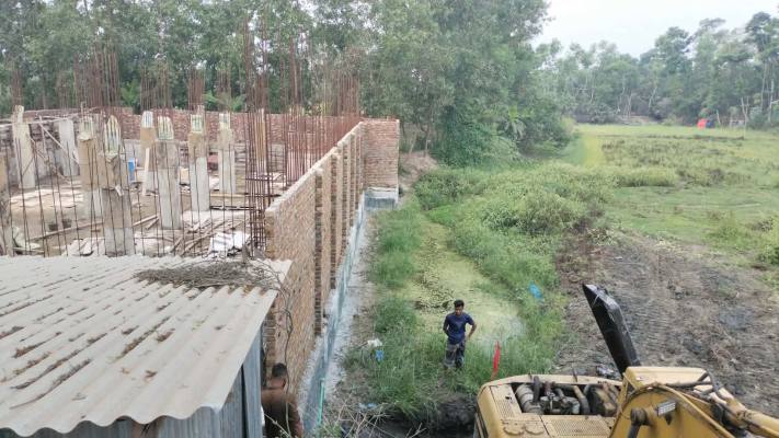 সরজমিনে গিয়ে রবিবার সকালে দেখা গেছে, ওই ভবনের পাশে সরকারি খাল খননের বেকু আসলে সরকারি খাল উন্মুক্ত করে ভবন ভেঙ্গে ফেলার জন্য জোর দাবি জানিয়েছেন এলাকাবাসী।