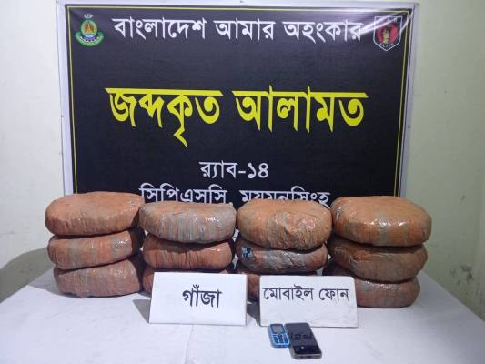 ময়মনসিংহের ঈশ্বরগঞ্জ উপজেলায় মাদকবিরোধী অভিযানে ২৫ কেজি গাঁজাসহ চারজন মাদক ব্যবসায়ীকে আটক করেছে র্যাব-১৪।