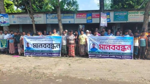 শিবগঞ্জে জাতীয় পার্টি নেতা রিপনের বিচারের দাবিতে মানববন্ধন