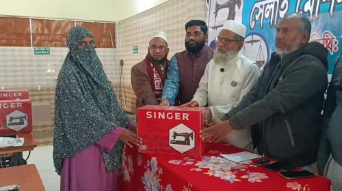 শিবগঞ্জে নারীদের মাঝে সেলাই মেশিন বিতরণ