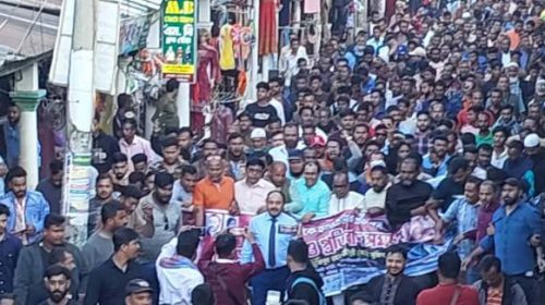 ইনকিলাব মঞ্চের মুখপাত্র হাদীকে হত্যাচেষ্টার প্রতিবাদে কমলগঞ্জ বিক্ষোভ মিছিল